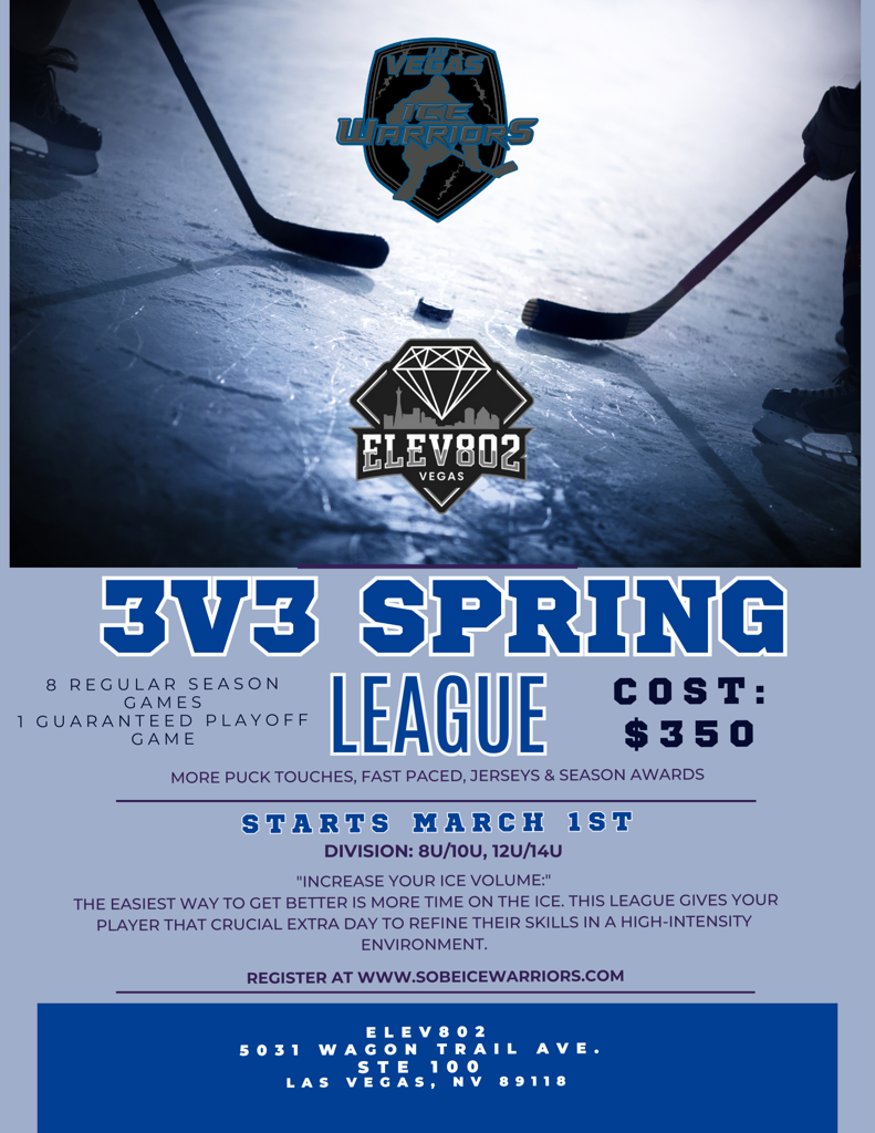 We appreciate families helping us plan early and look forward to another great spring season with the Las Vegas Ice Warriors.